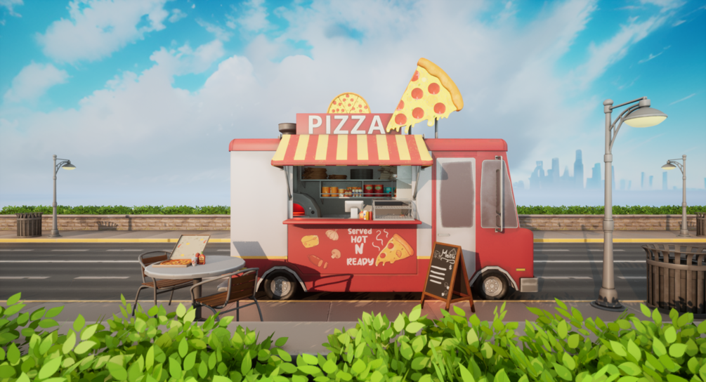 Detailed textures and high-quality 3D models, our pizza truck scene is perfect for creating a stylized rendering that will bring your project to life.